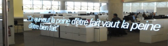 Ceux qui sont passés à Plaisir me comprendront, il s’agit des citations que l’on découvre aux points stratégiques de l’entreprise destinées tant aux employés qu’aux visiteurs, rappelant; à chacun; les valeurs de l’entreprise.